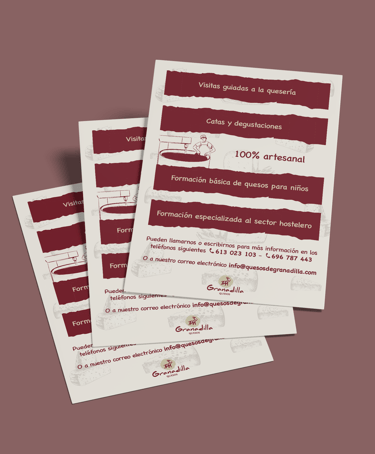 Cliente español de la región de Extremadura para trabajo presencial Y a distancia. Servicios fotográficos para la creación de carteles de quesos. Y en proyecto para carteles de «visita» e «informativos» para la nueva quesería. Foto adaptada para redes sociales y página web. Diseño de impresos (flyer, cuadernillo de juegos infantiles, catálogo de venta de quesos). Creación de golosinas (taza y bolsa). Community management, con asesoramiento y enlace con su agencia web. Ilustración para redes sociales e impresos. En definitiva, un vídeo explicativo para los visitantes de la nueva quesería. Trabajo en español para las ventas regionales.
