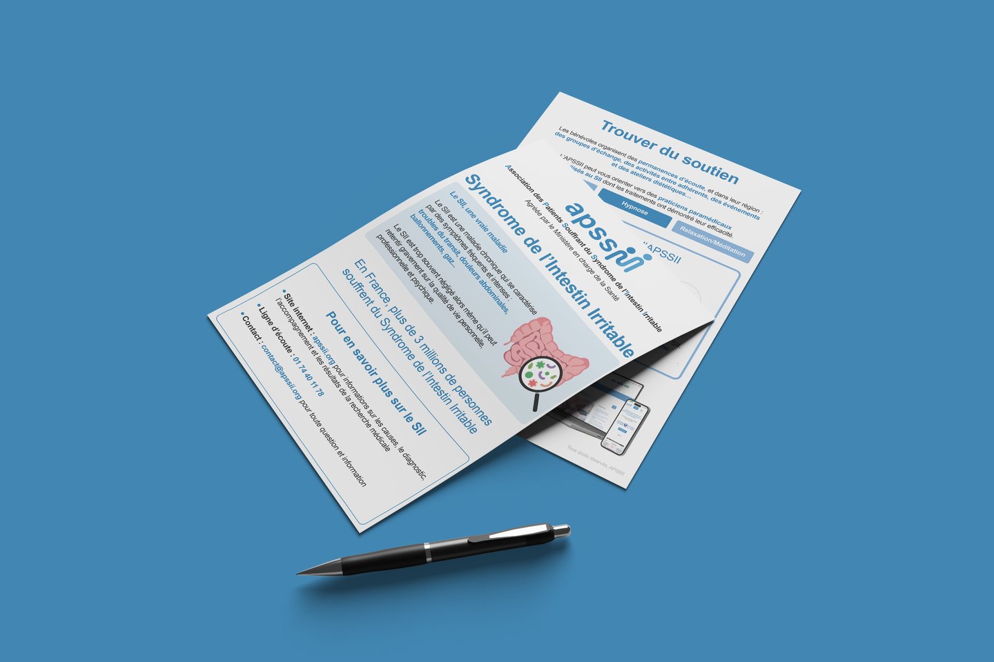 Client français national pour un travail 100% à distance. Création de leur flyer pour déposer chez les médecins, cliniques, CHU, ...